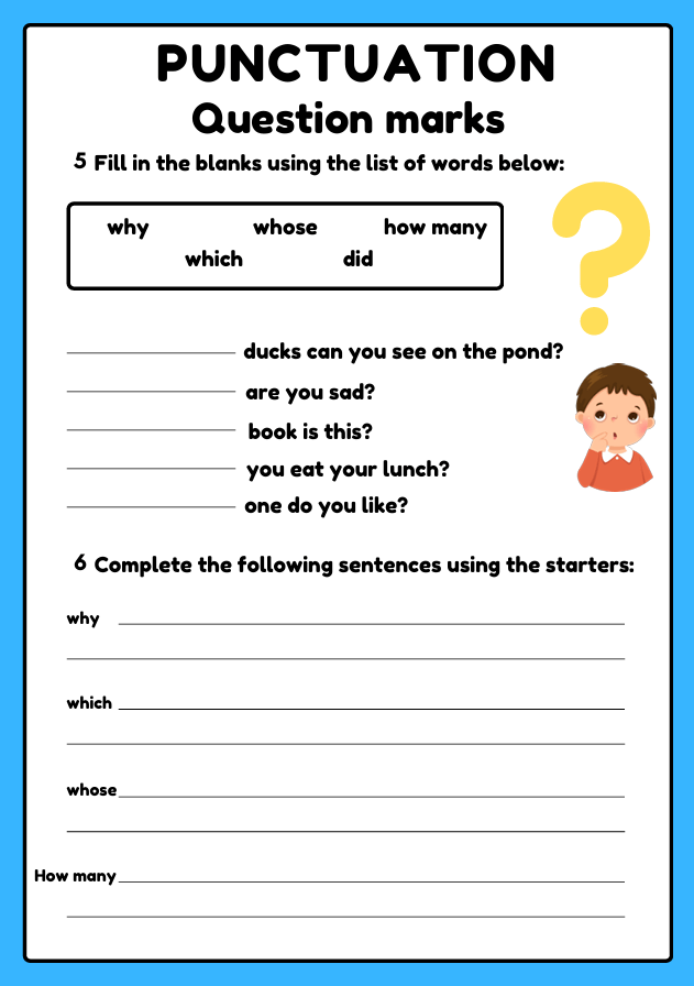 Question Words Worksheet for Kids (Ages 6–8) | Who, What, Why & Lots More!