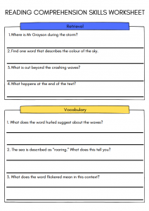 Develop key reading skills with this engaging Upper KS2 Reading Comprehension Worksheet for Ages 9–11 (Year 5 & Year 6). Based on the suspenseful fiction text The Lighthouse Keeper’s Warning, this resource helps pupils practise retrieval, vocabulary, inference and author’s choice questions in a structured format.