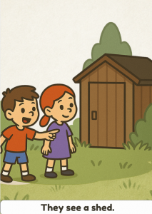 Perfect for children learning the digraphs sh, ch, th, ng, oo, ee, this fully decodable story follows two friends who discover a mysterious shed… and a cracking surprise inside! 🐣✨