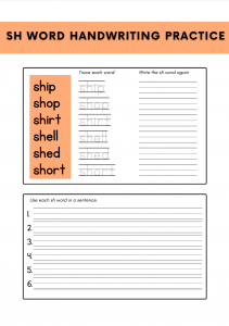 Engaging in a SH and Ch word handwriting activity is an exciting way for kids aged 6-9 to enhance their writing skills. This hands-on experience allows children to express their creativity while learning. The interactive nature of the activity makes it enjoyable, as kids can see their progress and take pride in their work. Additionally, the combination of fun words and writing practice keeps them motivated and eager to participate, turning a simple lesson into an adventure in learning!