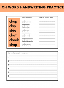In this fun activity, children will practise writing ‘ch’ and ‘sh’ words with confidence.