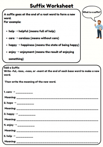 Help your KS2 learners master word building with this engaging Suffix Worksheet by Mr English! Perfect for children aged 7–11, this printable activity teaches common suffixes — -ful, -less, -ness, and -ment — through fun examples, stories, and creative sentence tasks. Designed to make spelling and grammar enjoyable, this worksheet builds confidence and strengthens vocabulary skills for classroom or home learning.