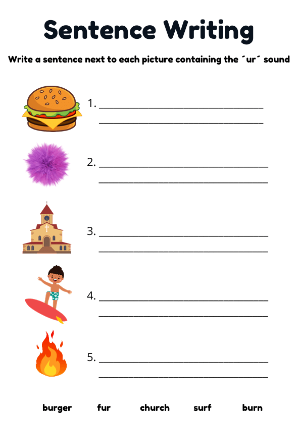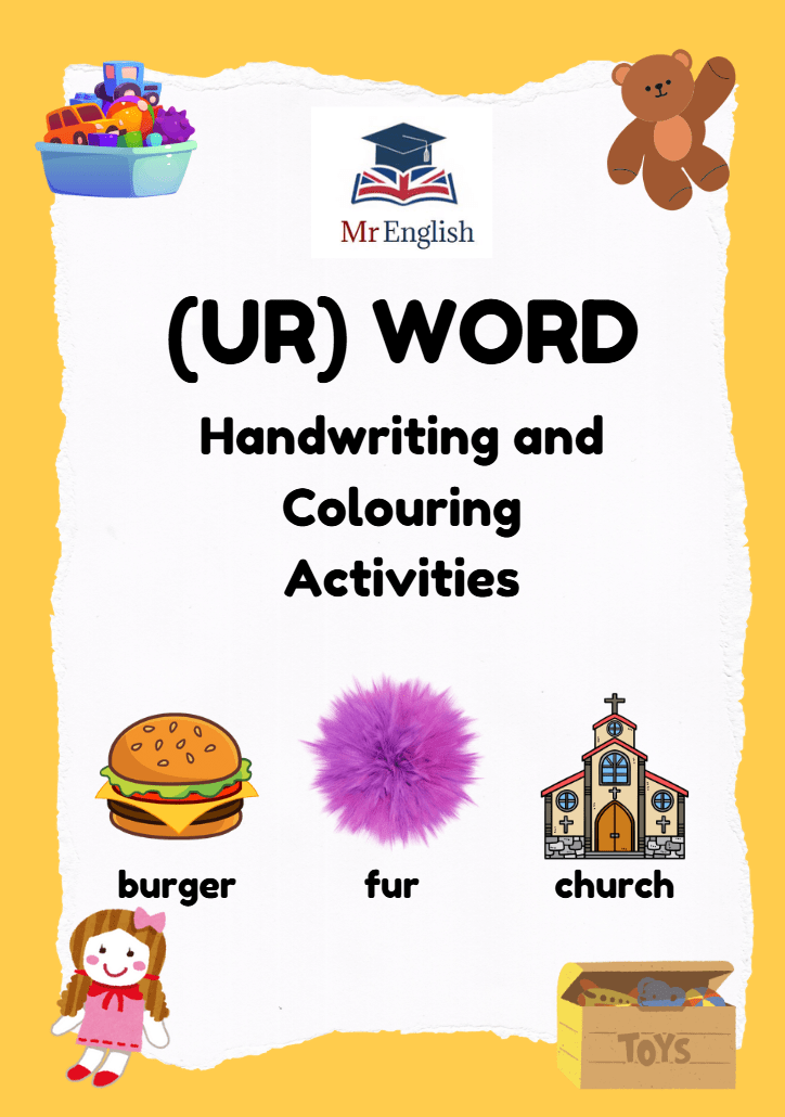 Fun and interactive phonics worksheet to help children learn ‘UR’ words such as fur, burn, nurse, and turtle. Includes handwriting, sentence writing, and colouring activities to boost early reading and spelling skills.