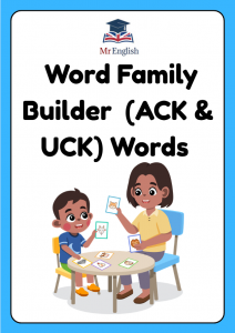 Help children develop strong phonics skills with this engaging ACK and UCK blending activity . Learners practise adding initial sounds to endings to build real words such as luck, duck, and muck, supporting early reading and decoding skills.