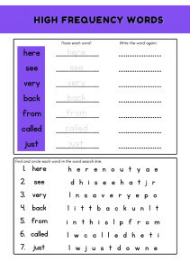 Fun and engaging worksheet for children aged 5–6 learning high frequency words: here, see, very, back, from, called, just. Includes tracing, wordsearch, sentence writing, unscrambling and more literacy activitie