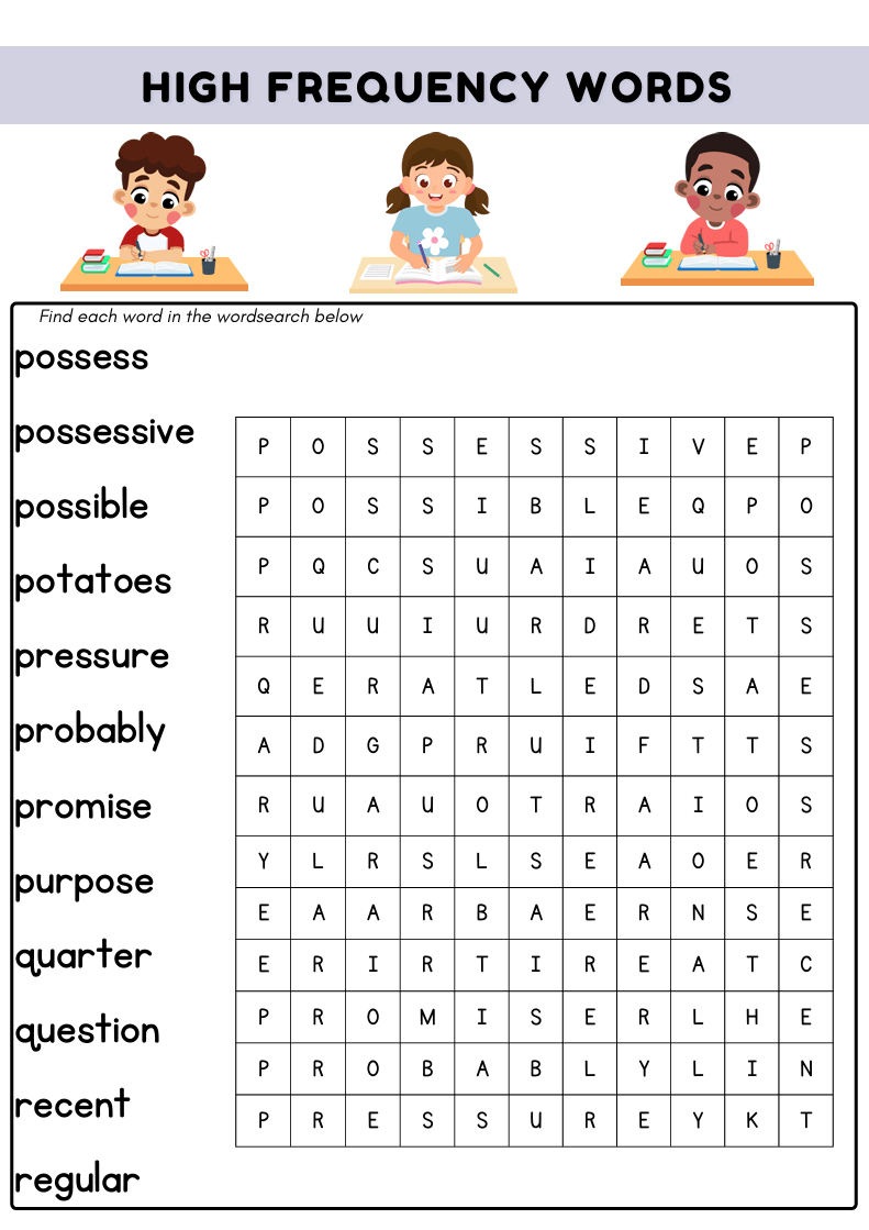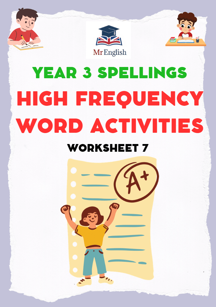 Download this free Year 3 spelling worksheet for ages 7–8. Includes high frequency words practice, scrambled words, wordsearch, and writing activities to improve spelling and vocabulary.
