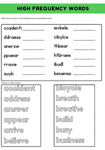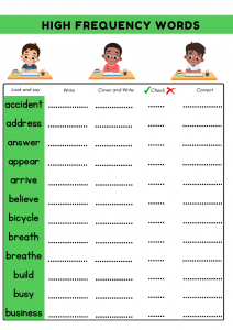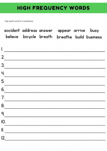Year 3 High Frequency Words Worksheet 1 offers an engaging way for kids ages 7–8 to practice their spelling skills. With a focus on high frequency words, this printable resource transforms learning into a fun activity. Children will enjoy the hands-on approach, allowing them to interact with words they encounter frequently. The joy of completing a worksheet can boost their confidence and make learning feel like an exciting challenge rather than a chore.