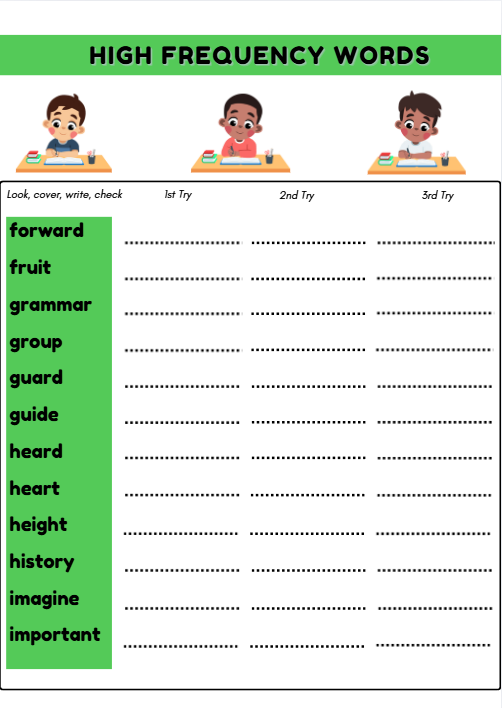 Support spelling mastery with this Year 4 high frequency words worksheet for children aged 8–9. Designed to consolidate familiar Year 3/4 statutory spellings, this resource includes Look, Cover, Write practice, sentence completion, scrambled words, and a word search to build accuracy, vocabulary, and confidence.